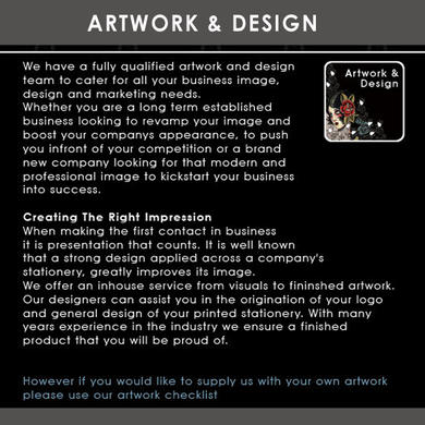 Our designers can assist you in the origination of your logo and general design of your printed stationery. With many years experience in the